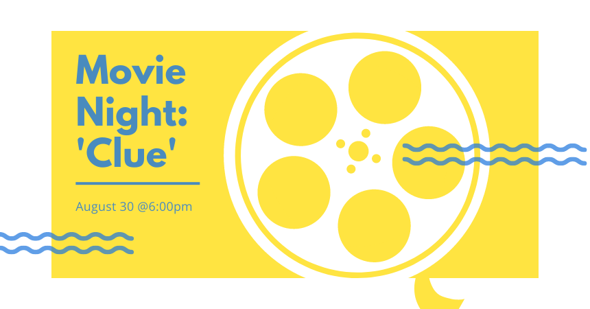 Adult Movie Night: Wednesday, August 30 at 6:00 pm. Join us for the classic mystery comedy Clue, based on the equally classic board game!