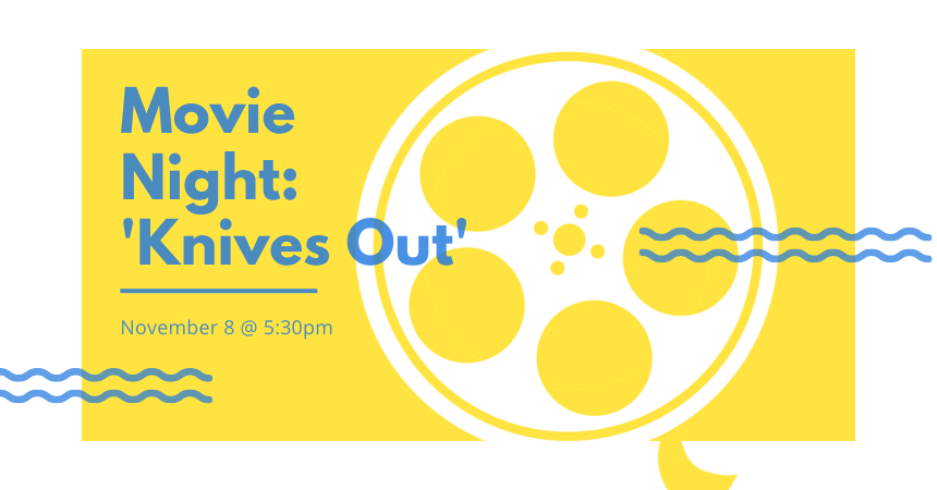 Wednesday, November 8, 2023 | 5:30 to 7:45pm United States Join us at the library to sit back, relax, and enjoy a good film and good snacks! Adult Movie Night: Wednesday, November 8 at 5:30 pm. Join us for the clever mystery dramedy Knives Out. Audience Adults
