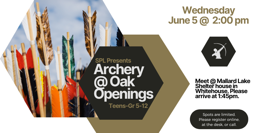 Wednesday, June 5, 2024 | 2 to 3pm United States Wednesday, June 5 at 2:00 pm. Archery at Oak Openings! Meet at the Mallard Lake Shelter in Whitehouse. Spots are limited; please register. Audience Teens