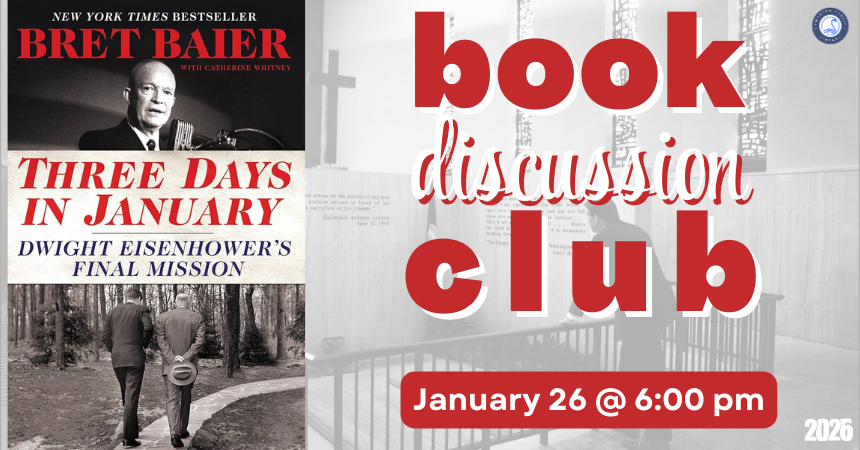 Book Discussion Club: Join the library book club on Monday, January 26 at 6:00 pm to discuss Three Days in January: Dwight Eisenhower’s Final Mission by Bret Baier. Copies are available at the front desk.