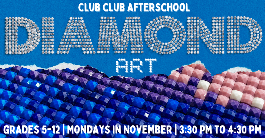 Club Club is growing! Teens and preteens in grades 5-12 are invited to come to the children’s room between 3:30 pm to 4:30 pm every day after school in November. Enjoy snacks and arts and crafts, work on homework, or just hang out together. Participants can request a special craft or activity on Thursdays. See you after school!