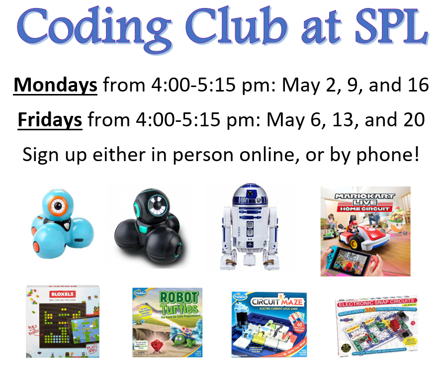Coding for grades K-12 is back in action! Thanks to a grant from the American Library Association and Google for Education for Digital Learning Day, we have new equipment, including coding robot Cue, and can now hold classes of up to five students while still maintaining social distancing!