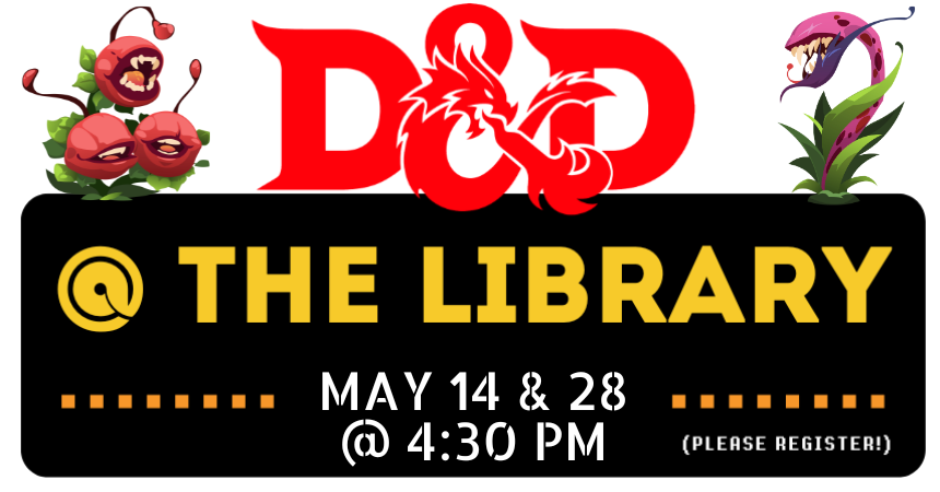 Tuesday, May 14, 2024 | 4:30 to 6:30pm United States Tuesdays, May 14 and 28 at 4:30 pm. Please bring a 5th edition third-level character sheet if possible; pre-generated characters will also be available. New players, please register online. Register Audience Adults Teens