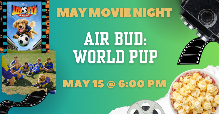 Wednesday, May 15, 2024 | 6 to 8pm United States Craving movie-theater-style popcorn? All ages are invited to the library at 6:00 pm on Wednesday, May 15 to watch Air Bud: World Pup. Audience Adults Kids Teens