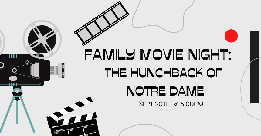 Have a craving for popcorn and some time to spare? Join us at the library to sit back, relax, and enjoy a good film and good snacks! Families and all ages are invited to watch the Disney classic The Hunchback of Notre Dame at 6:00 pm on Wednesday, September 20. “At the urging of his hilarious gargoyle pals Victor, Hugo, and Laverne, Quasimodo leaves the solitary safety of his tower, venturing out to find his first true friend, the beauty Esmerelda. The most unlikely of heroes, Quasi fights to save the people and the city he loves and, in turn, helps us to see people for who they are, rather than how they appear,” (THoND, 1996).