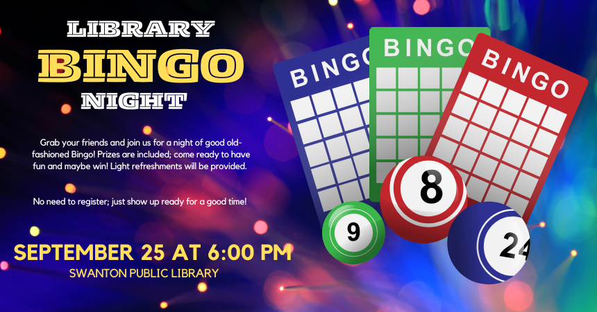 Grab your friends and join us on Wednesday, September 25 at 6:00 pm for a night of good old-fashioned Bingo! Prizes and light refreshments will be included. No need to register; just show up ready for a good time!