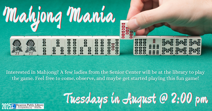 Tuesday, August 19, 2025 | 2 to 3pm United States Tuesdays at 2:00 pm. A few ladies from the Senior Center will be here to play the game. Feel free to come, observe, and maybe even play! Audience Adults