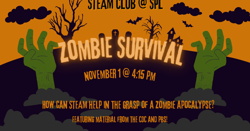 ZOMBIE SURVIVAL: November 1. How can STEAM help you survive in the grasp of a zombie apocalypse? Featuring info from the CDC and PBS!