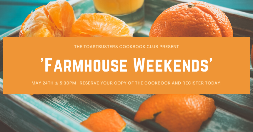 Toastbusters is back! This month the club will focus on Farmhouse Weekends: Menus for Relaxing Country Meals All Year Long by Melissa Bahen, “the cookbook for anyone who daydreams of country life. Prepare meals and experiences to enjoy in the easy companionship of family and friends – everything you need to create the perfect farmhouse weekend, no matter where you live, is found within these pages,” (Farmhouse Weekends, 2021). Bring your favorite country recipe with you and join us at 5:30 pm on Tuesday, May 24. Copies of this month’s cookbook are limited, so stop in, call, or register through our website as soon as you can!