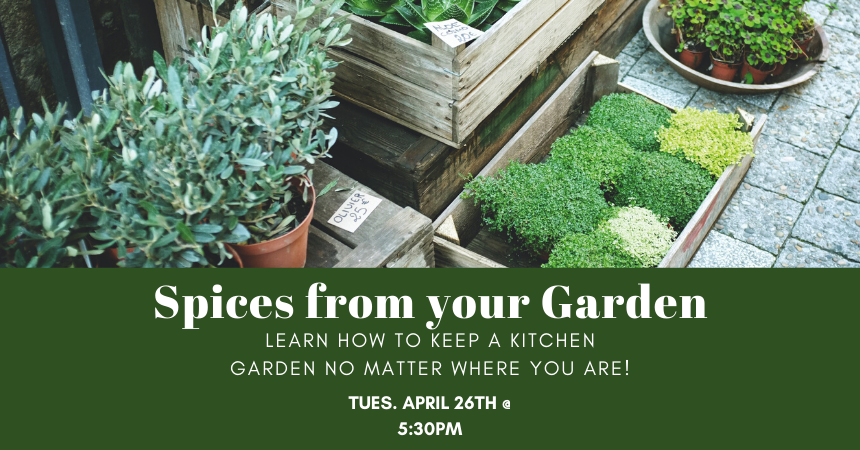 The Toastbusters are trying something a little different this month! Join us at 5:30 pm on Tuesday, April 26 to learn some tips and tricks for using herbs and seasonings to spice up your cooking. Seeds and cuttings available for anyone who wants to take some home. Stop in, call, or register through our website as soon as you can!