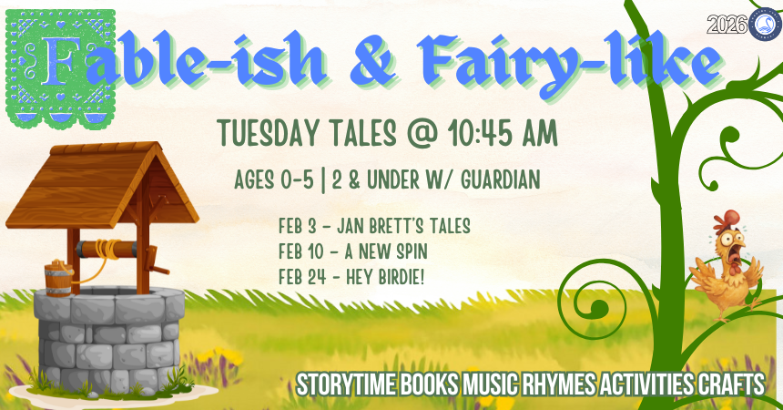 Storytime for preschoolers is held on Tuesdays at 10:45 am. Books, crafts, fingerplays, and more! Children 2 and under must be accompanied by a guardian.