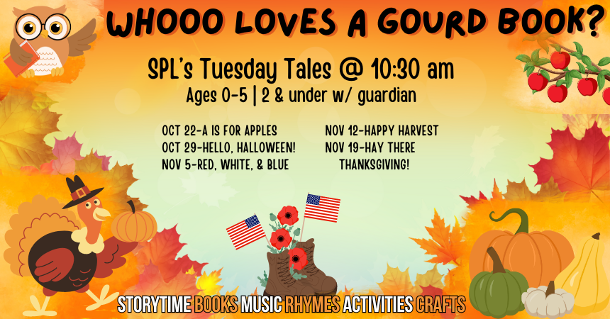 Storytime for preschoolers will be held on Tuesdays at 10:30 am. Children 2 and under must be accompanied by a guardian. Books, crafts, fingerplays, and more!