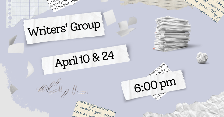 Thursday, April 10, 2025 | 6 to 7:30pm United States Writers’ Group – Thursdays, April 10 and 24 at 6:00 pm. Join freelance author Nathan Jacobs and other writers to discuss your work. All skill levels welcome! Audience Adults