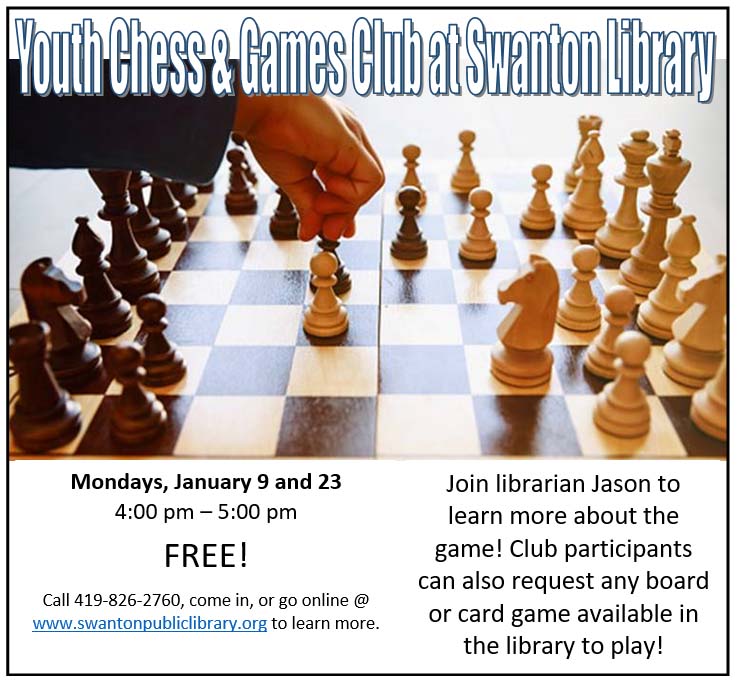 Join librarian and chess player Jason every other Monday at 4:00 pm, to learn more about the game. Club participants can also request any board or card game available in the library to play! Youth Chess & Games Club is open to all interested youth.
