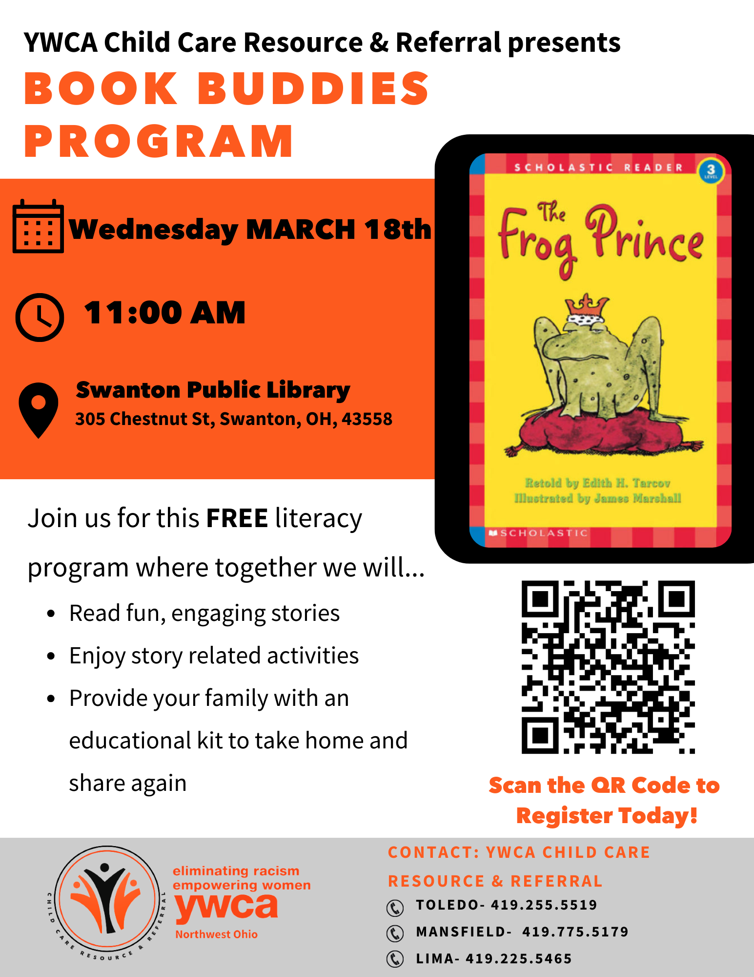 Take advantage of no-preschool Mondays! Preschool and elementary-age children are invited to join the YWCA at Swanton Public Library for fun with books, crafts, and activities on Monday, February 26 at 11:00 am. Kids also receive a take-home kit including the book!